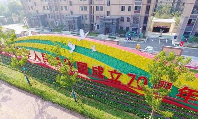 為迎接新中國成立70周年重大節(jié)日活動,切實(shí)營造熱烈慶祝新中國成立70周年,開發(fā)公司在氛圍實(shí)施中通過景觀協(xié)調(diào)、做到點(diǎn)線面的統(tǒng)一結(jié)合,相互銜接、相得益彰的整體效果,提升園區(qū)的城市內(nèi)涵品位,展示園區(qū)迎接建國70周年。