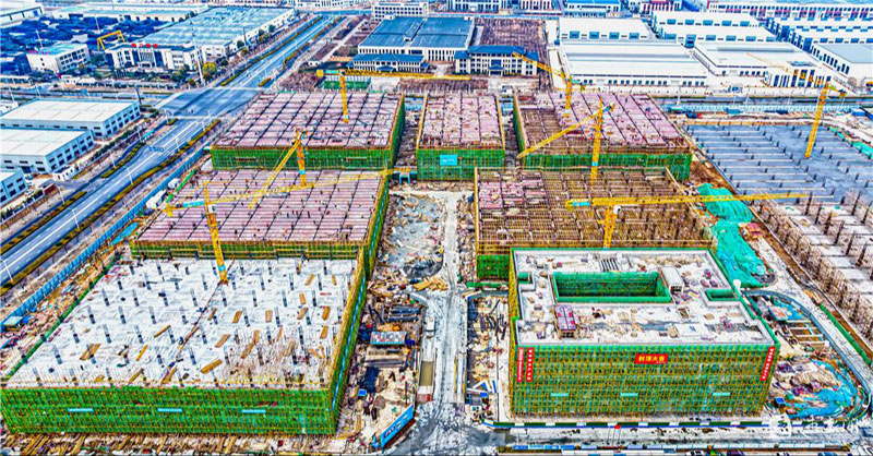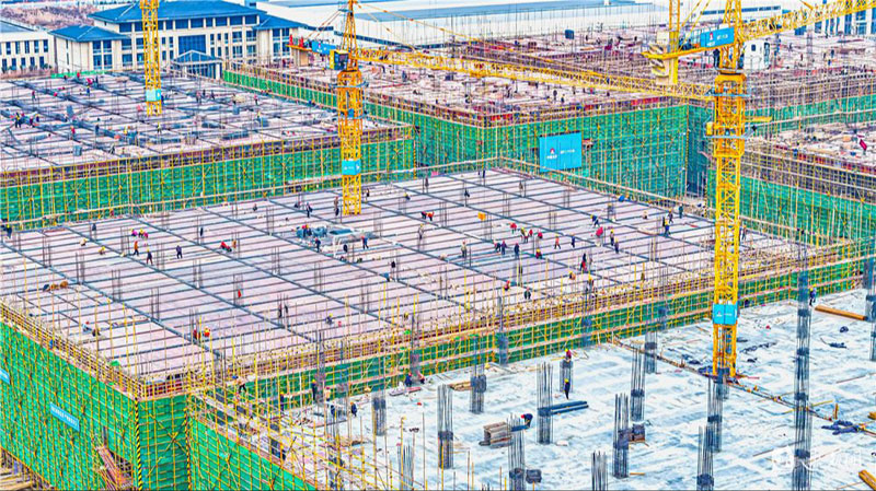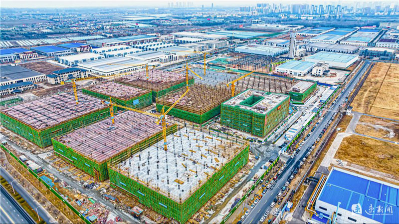 12月26日,蘇宿工業(yè)園區(qū)智慧信息產(chǎn)業(yè)園項(xiàng)目施工現(xiàn)場(chǎng),建設(shè)人員正在有序施工。