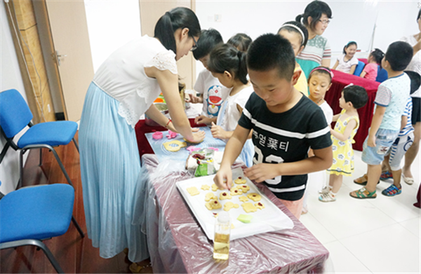 園區(qū)居民徐老師也加入社工的隊伍,她說:一個孩子要帶,一群孩子一樣帶,社區(qū)提供這樣的平臺,正好讓她這個化學(xué)老師學(xué)有所用、用有所長。徐老師與社工為孩子們精心設(shè)計了手工制作、創(chuàng)意畫板、親子DIY、餅干烘焙、安全自護(hù)、戶外探險等課程,不斷灌輸“小候鳥”們各種知識與道理,使孩子在收獲快樂的同時健康成長,也給“小候鳥”留下一段難忘的暑期生活記憶。