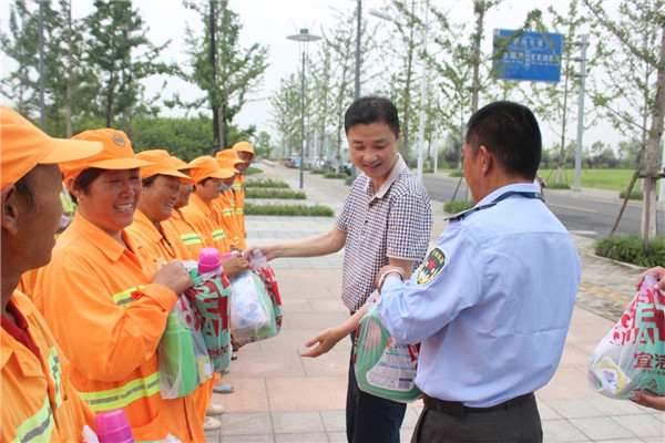 6月29日上午,園區(qū)黨工委委員、管委會副主任、規(guī)劃建設(shè)局局長許紹杰帶隊,親切慰問了奮戰(zhàn)在一線的城市維護作業(yè)人員,給他們送去了夏日里的問候和黨的關(guān)懷,感謝他們?yōu)閳@區(qū)的整潔、優(yōu)美城市環(huán)境所作出的貢獻。