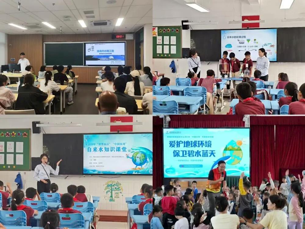“水務知識進校園”活動分別走進北京師范大學珠海校區(qū)、高新區(qū)唐家小學、香洲區(qū)岱山幼兒園等20余所學校,增強青年學生珍惜水資源的意識。